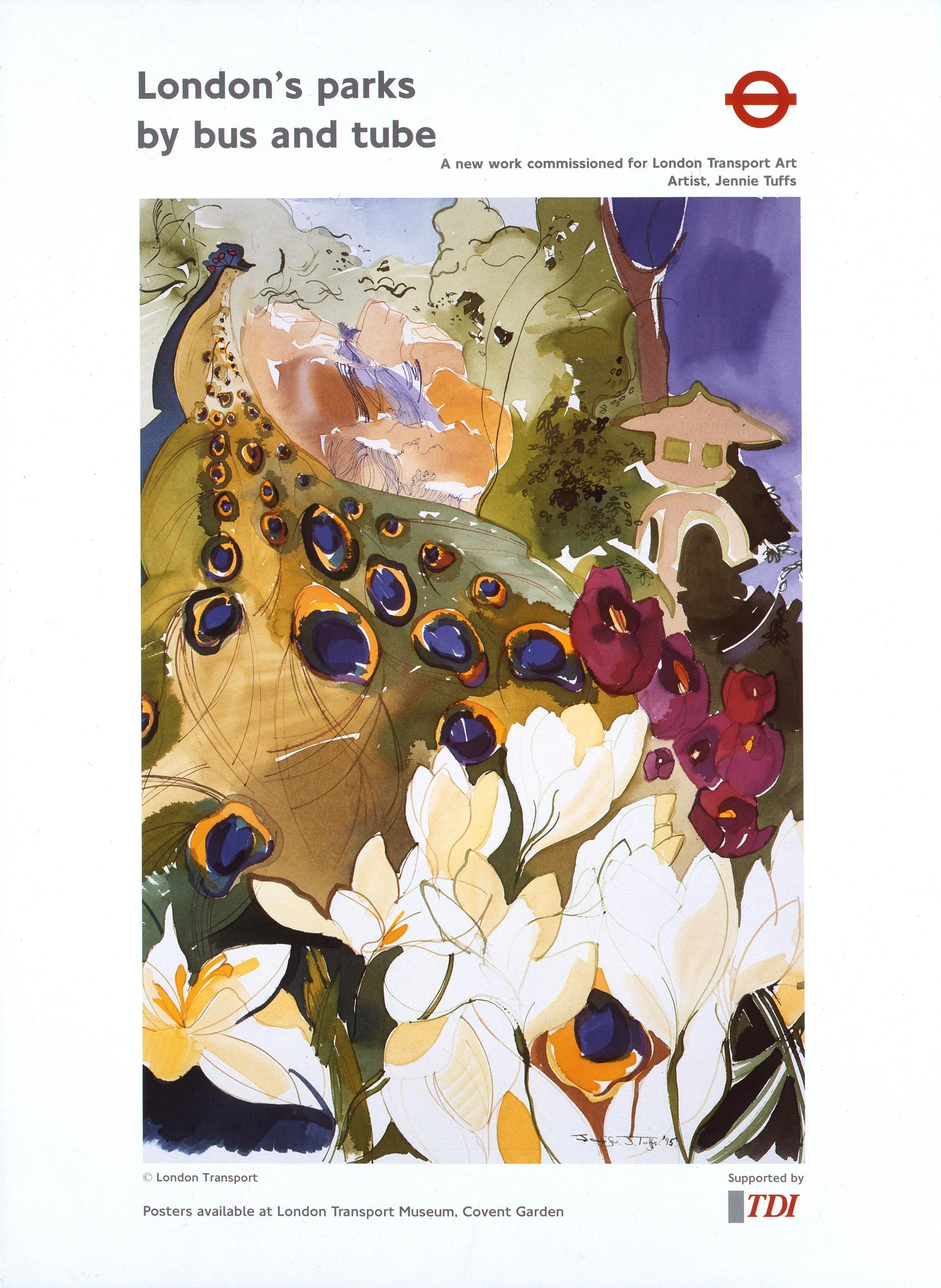 Following the huge success of her poster "The new Kew by Tube", which was originally published in 1987, Jennie was commissioned by Transport for London in 1995 to create six more images for posters for display across the network to promote travel to London's open green spaces.